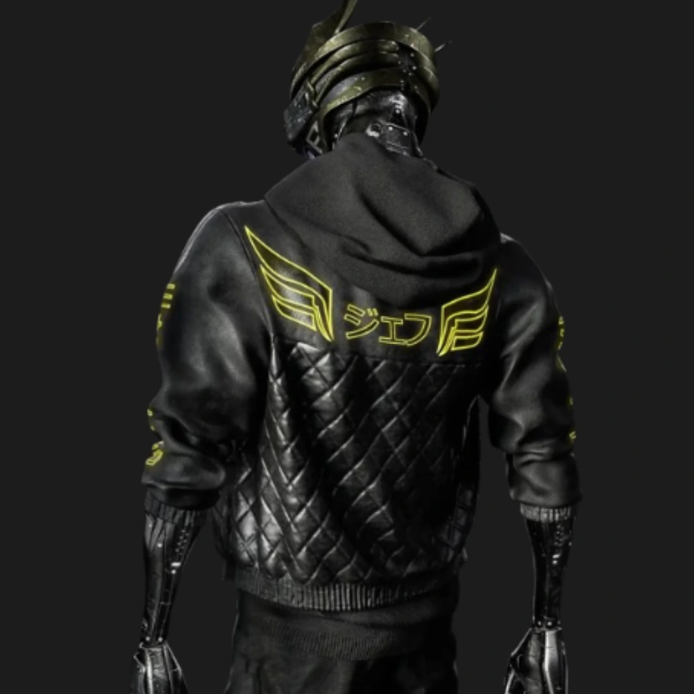 The design draws from Night City’s underground, making it an ideal bomber jacket punk fans will love. Crafted from high-grade black leather at Aarma Jackets, it features a specialized cyborg aesthetic with ribbed cuffs for a premium fit. This piece is a versatile staple for any futuristic wardrobe. To complete your look, explore our full Cyberpunk Jacket collection for more iconic gear.