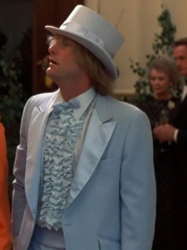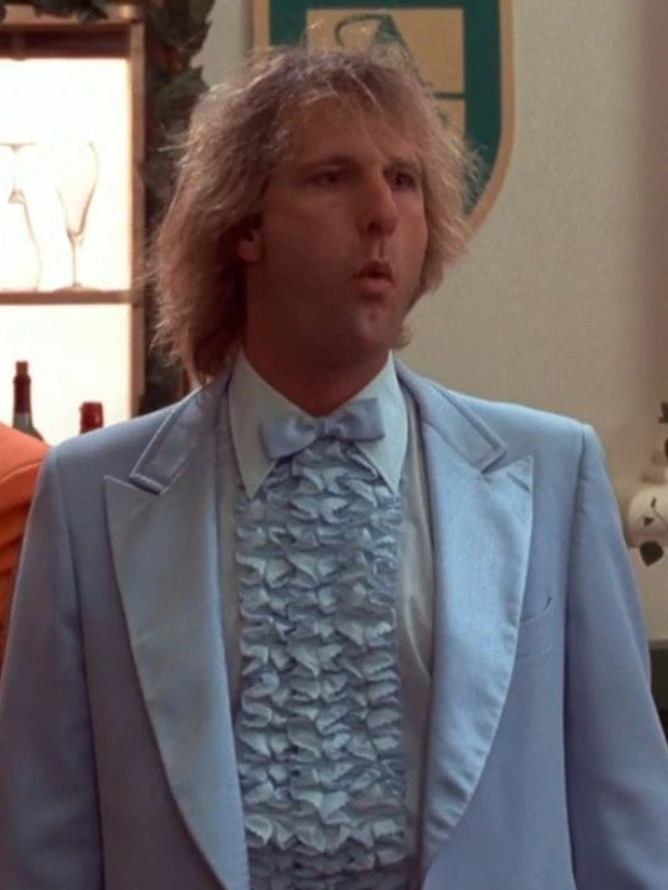 Step into the shoes of the lovable Harry Dunne with the authentic blue suit from Dumb and Dumber at Aarma Jackets. This powder blue masterpiece is a tribute to the 1994 comedy classic, specifically designed for fans who want to recreate the unforgettable Aspen gala look. Crafted with precision and high-quality suiting fabric, this tuxedo ensures you look sharp while staying true to the hilarious spirit of the film.