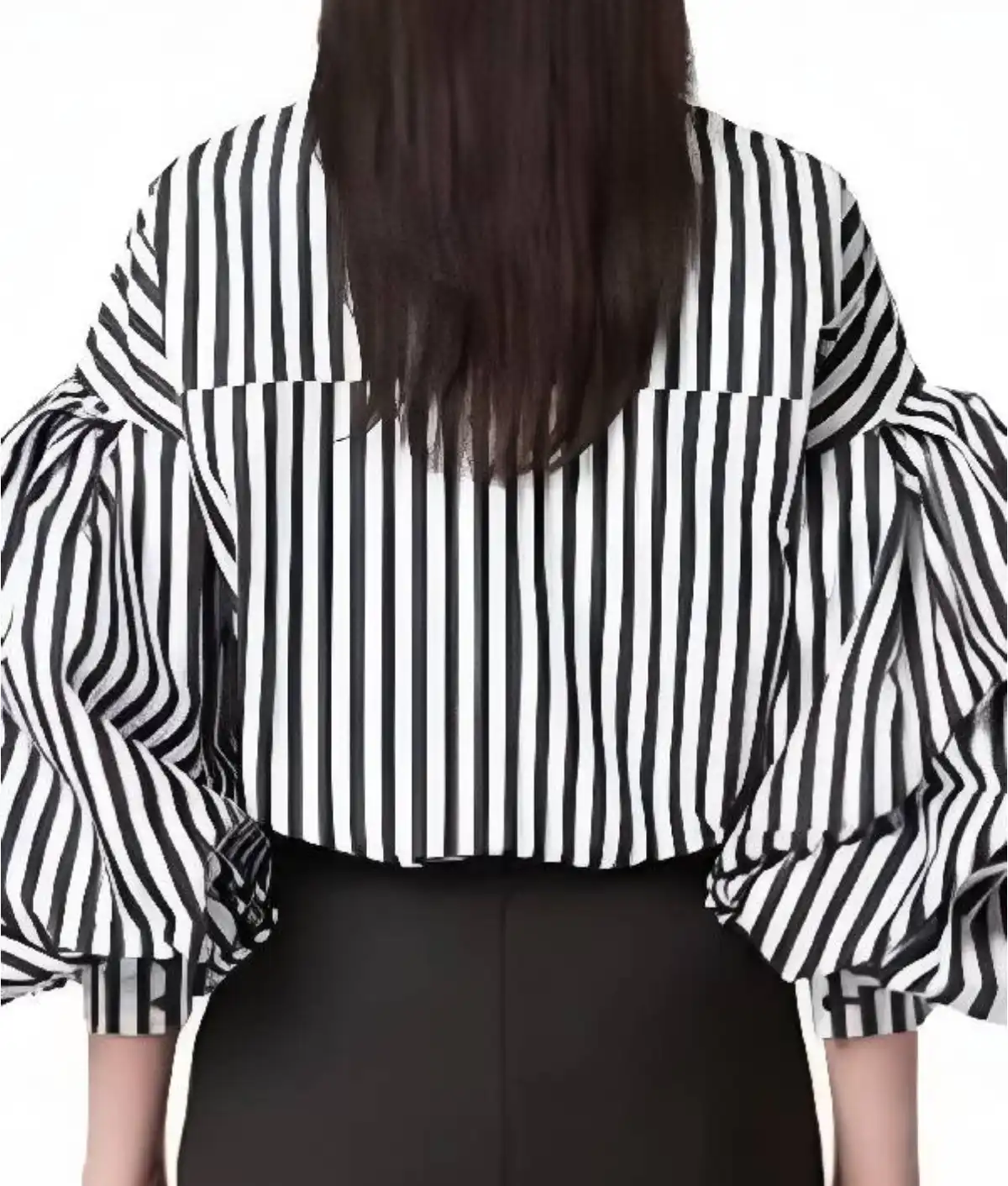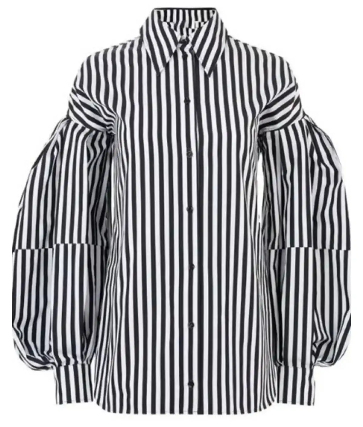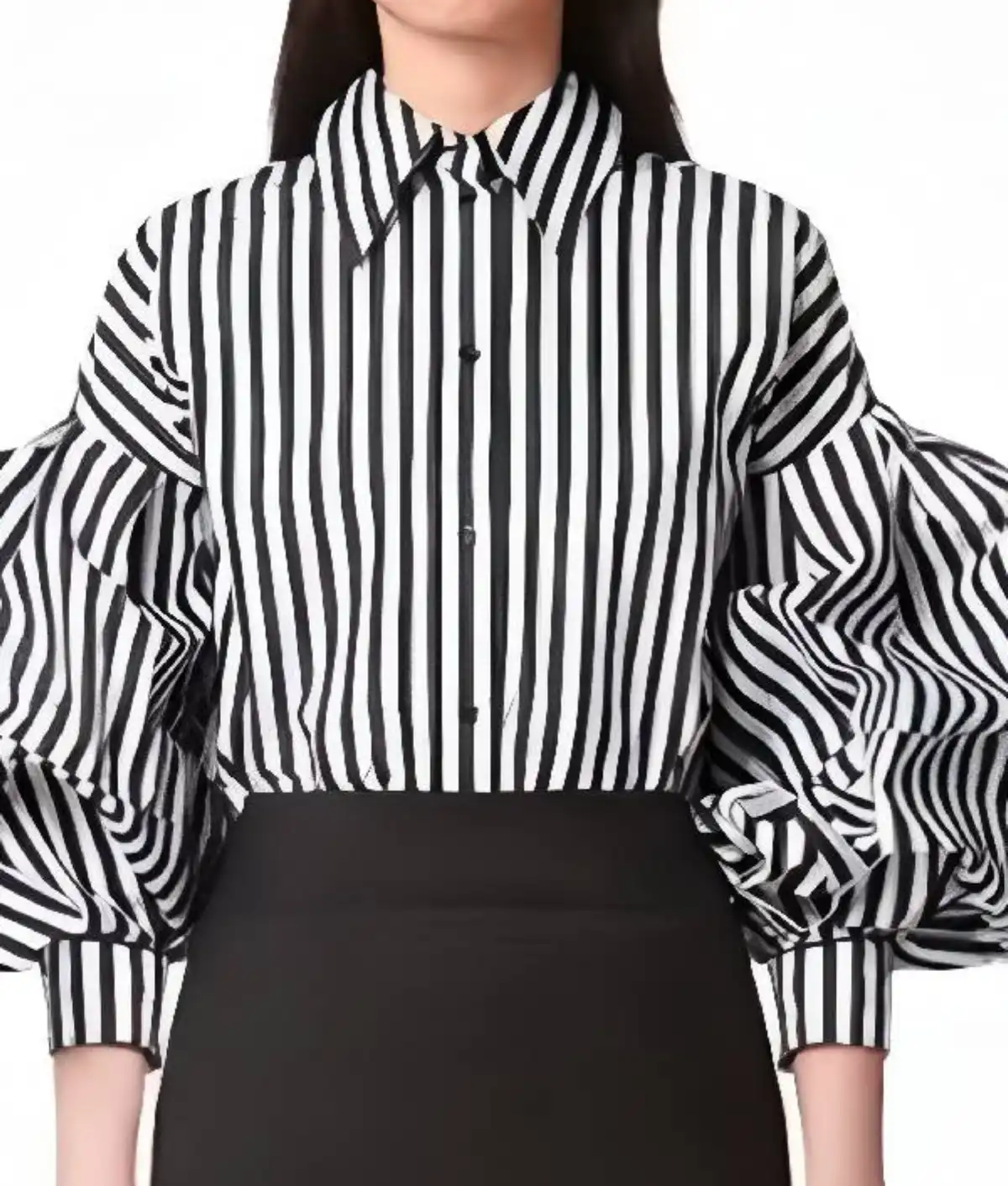 The shirt is expertly tailored from premium cotton fabric, ensuring breathability and a crisp, clean look throughout the day. For added comfort, a soft viscose lining is incorporated on the interior. The design stands out with its elegant puff sleeves and a timeless white and black striped pattern. Featuring a traditional shirt-style collar and a front button closure, this piece offers a polished yet whimsical aesthetic. With full-length sleeves and buttoned cuffs, it is a versatile staple for any 2026 fashion enthusiast. Whether you are strolling through a cafe or heading to a creative meeting, this shirt brings a touch of Emily’s Parisian (and Roman) flair to your collection.
