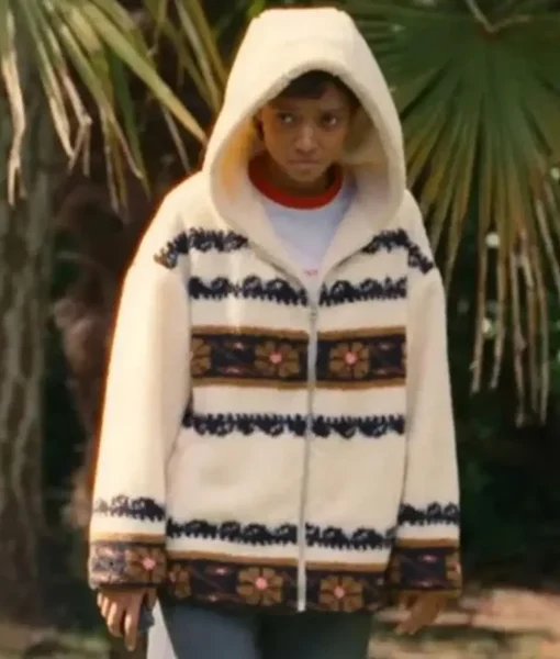 In the Netflix series Everything Now, Sophie Wilde’s character Mia captures the vibrant and often chaotic energy of teenage life through her unique wardrobe. This Everything Now Sophie Wilde printed hoodie is a standout piece from the 2023 season, featuring a playful design that reflects the show’s artistic aesthetic. Whether Mia is navigating new friendships or personal growth, this distinctive white layer keeps her looking stylishly comfortable. For fans of the series, this Sophie Wilde Everything Now 2023 printed hoodie is the perfect way to bring a piece of Mia’s expressive and cozy style into your own daily rotation.