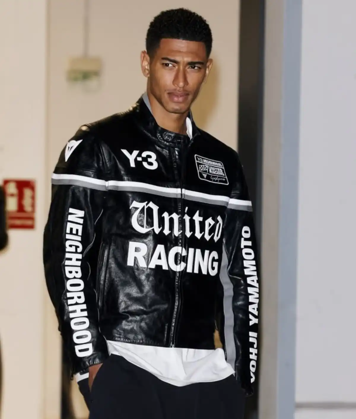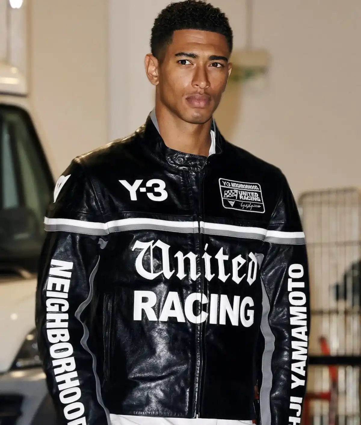 Channel the elite style of football’s brightest star with the Jude Bellingham Y-3 NBHD leather racer jacket. Known for his commanding presence both on the pitch and in the fashion world, Bellingham’s collaboration-inspired look is the ultimate benchmark for modern luxury. This black leather racer jacket offers a sharp, aerodynamic silhouette that perfectly blends a rugged biker aesthetic with high-end streetwear. If you are looking to buy a celebrity leather jacket that exudes confidence and athletic sophistication, this premium recreation is a top-tier choice for 2026.