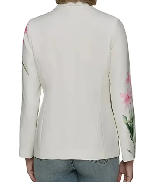 Katherine Kelly The Bold and the Beautiful Notched Lapels and Black Buttons White Floral Graphic Slim-Fit Crepe Blazer