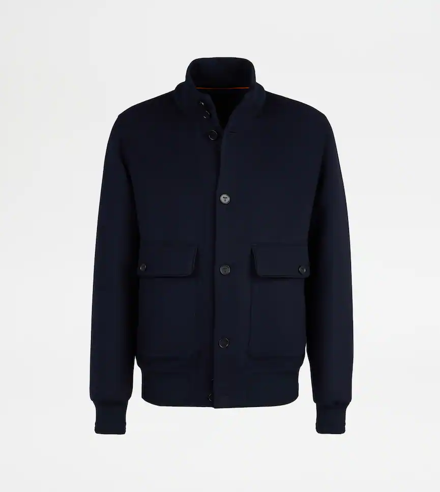 Liam Hemsworth The Australian Open 2026 Stand Collar, Button Front Placket Navy Blue Bomber Jacket