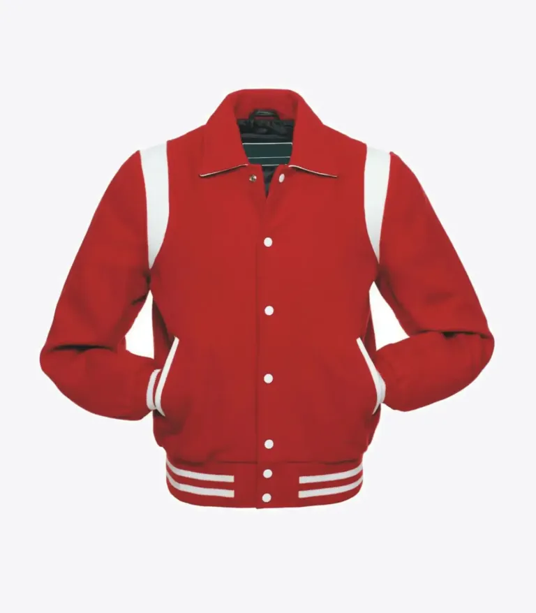 This jacket is skillfully tailored from premium wool fabric, providing excellent warmth and a high-end feel. The interior is lined with a soft viscose material for a smooth, breathable experience. Unique to this design is the sharp pointed collar, which gives it a more sophisticated edge compared to standard varsity styles. Featuring a traditional button closure and snug ribbed cuffs, the jacket ensures a structured silhouette. With its deep red hue and two functional waist pockets, this piece is a striking tribute to one of Hollywood’s most iconic action-comedy duos.