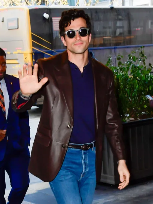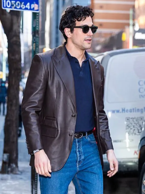 Paul Anthony Kelly NBC Studio Single-Breasted Tailored Fit, Notch Lapels Chocolate Brown Leather Blazer