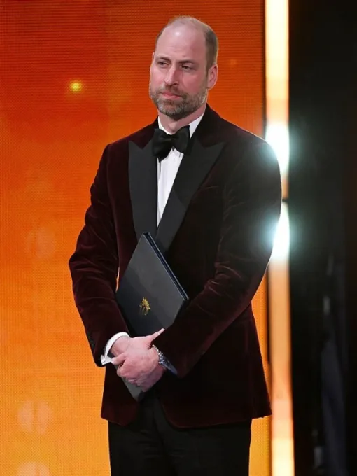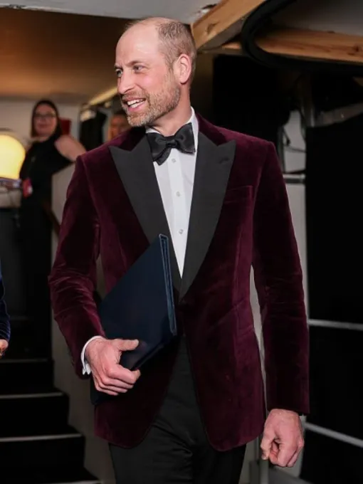 Prince William 2026 EE BAFTA Film Awards Burgundy Velvet Blazer