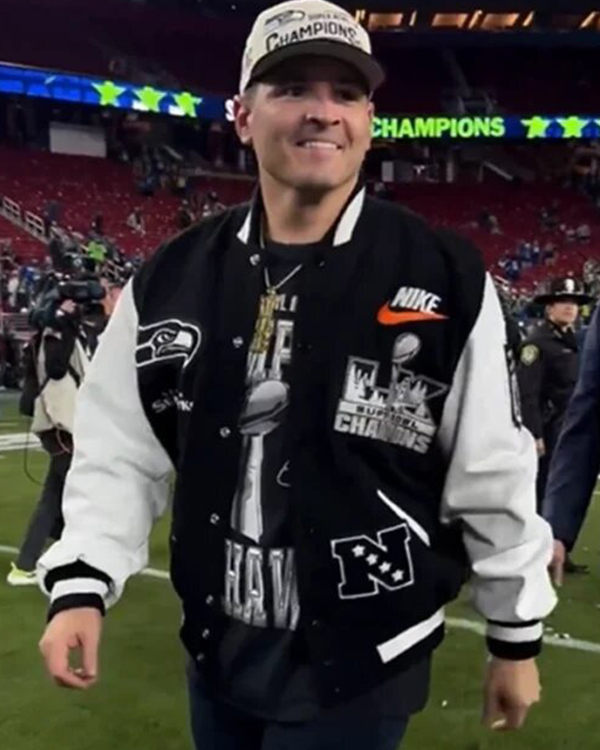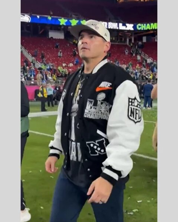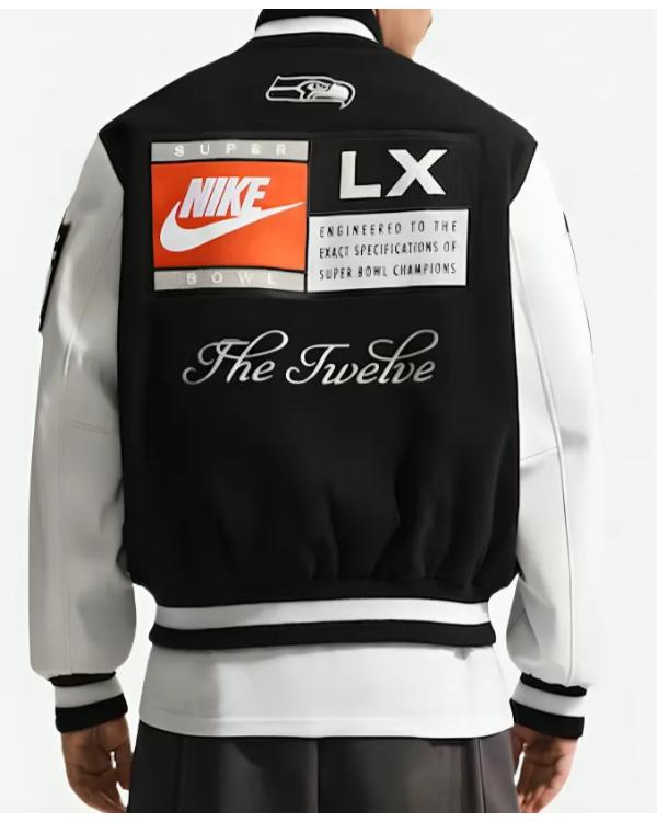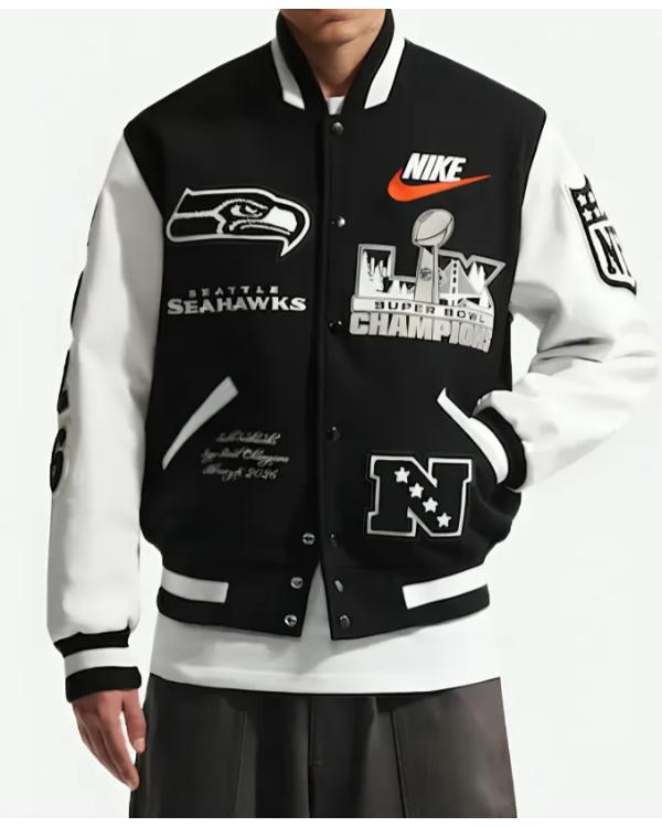 Seattle Seahawks Super Bowl LX Champions Destroyer Black Body White Sleeves Varsity Jacket