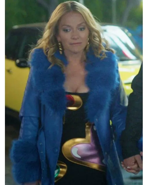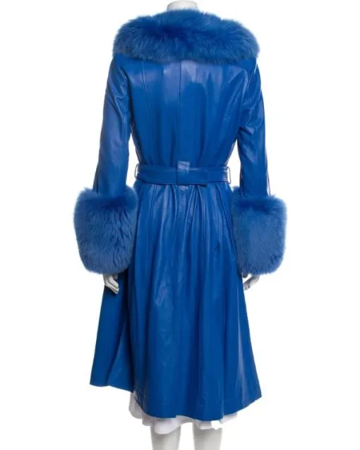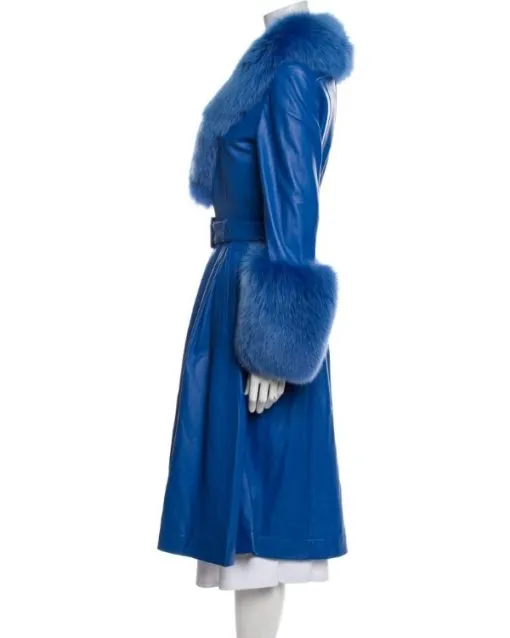The Lincoln Lawyer S04 Becki Newton Faux-Fur Trim Blue Belted Leather Coat