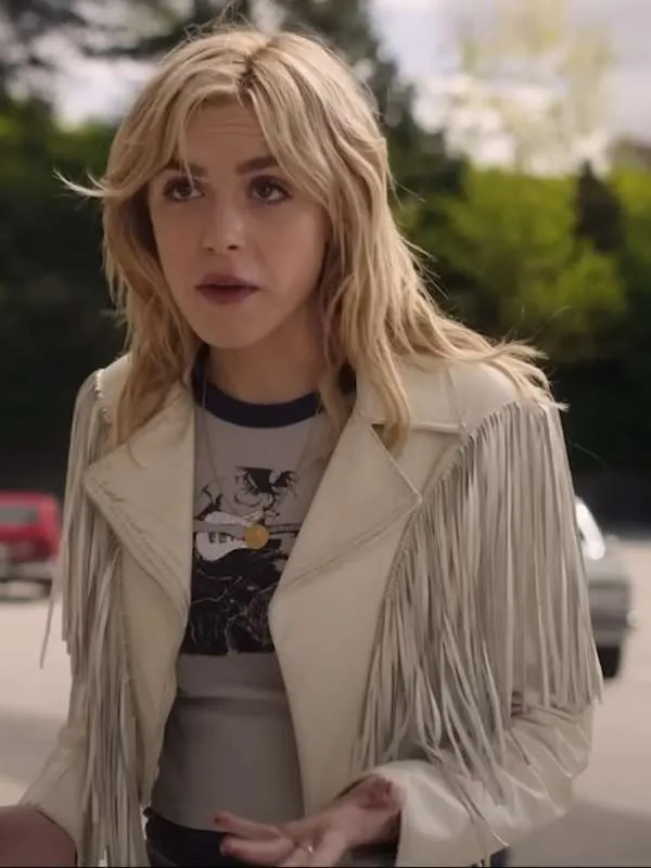 Totally Killer 2023 Kiernan Shipka White Fringe Jacket