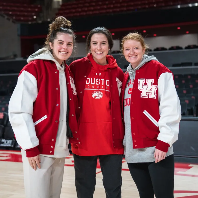 Showcase your Cougar pride with the official University of Houston jacket, a timeless tribute to one of Texas’s most prestigious institutions. This jacket perfectly captures the spirited energy of the UH campus, making it an essential piece for game days at TDECU Stadium or alumni meetups. For those searching for an authentic University of Houston varsity jacket, this design balances traditional collegiate aesthetics with high-end materials. Whether you are a current student representing your school or a fan of Houston’s rich sports history, this red and white ensemble offers a bold, athletic look that never goes out of style.