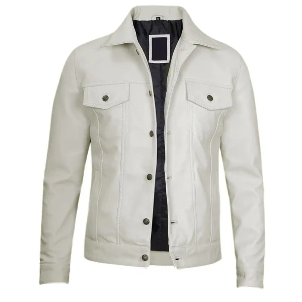 White Leather Trucker Biker Jacket
