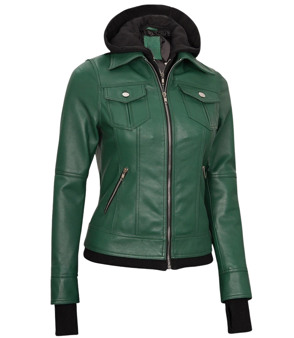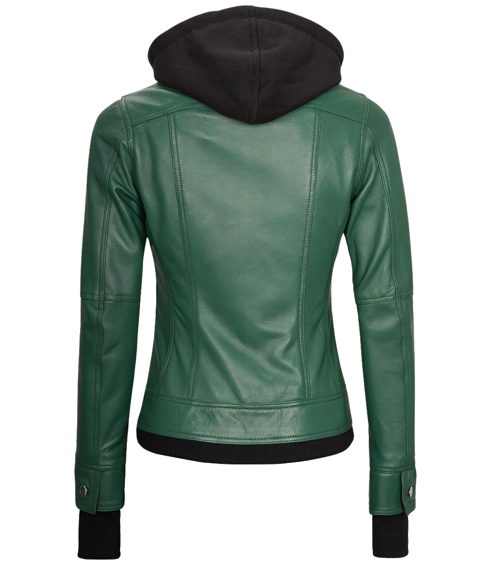Women's Green Hooded Leather Jacket