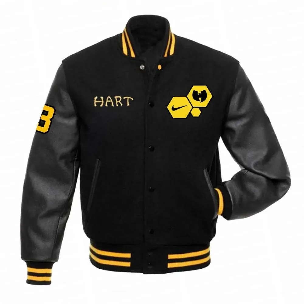 Represent the raw legacy of East Coast hip-hop with the Wu-Tang Hart jacket, a premium piece that bridges the gap between legendary rap culture and high-end streetwear. Worn by Kevin Hart during high-profile public appearances, this jacket pays tribute to the iconic Wu-Tang Clan, blending their gritty aesthetic with a modern, polished fit. For fans searching for a high-quality Wu-Tang Hart black jacket, this design is a perfect choice, offering a sophisticated way to display your loyalty to the 36 Chambers. Whether you are hitting the city streets or attending a concert, this Wu-Tang Hart letterman jacket delivers a timeless, authoritative look that commands respect.
