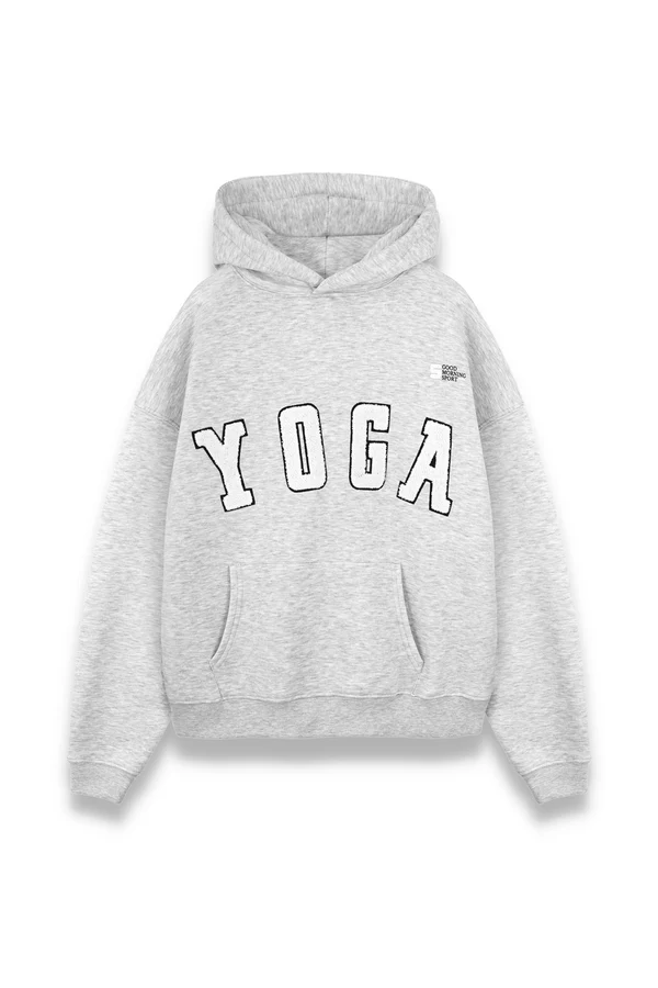 Experience the perfect blend of serenity and style with our Yoga Melange hoodie. Designed for those who prioritize both comfort and a modern aesthetic, this grey oversized hoodie is a versatile staple for your activewear collection. Whether you are heading to a morning session or enjoying a relaxed weekend in the city, the soft melange texture and bold “YOGA” lettering provide a clean, trendy look that resonates with contemporary athleisure fashion.